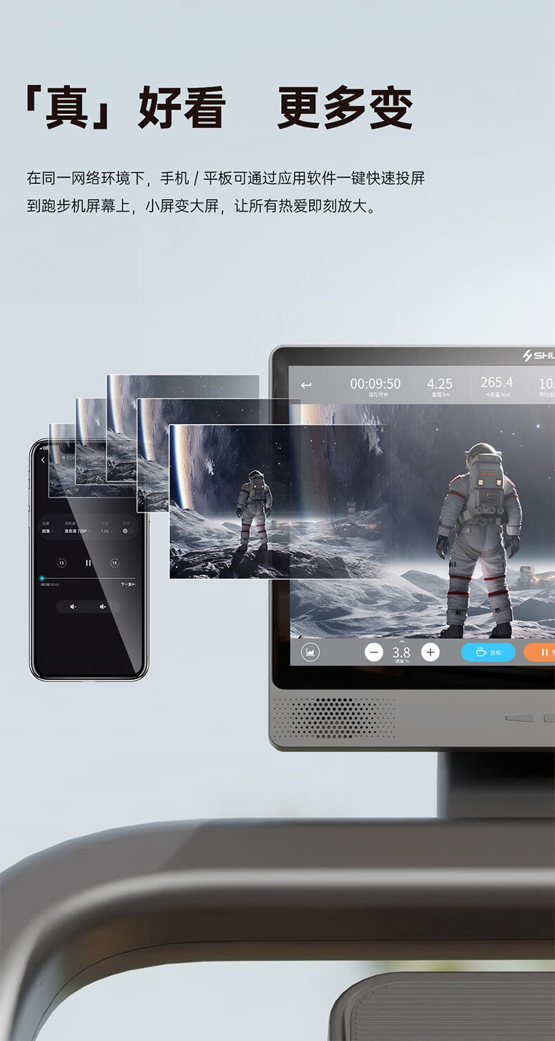 好博SH-T580T I5跑步机,科学运动处方,随心跑不盲动,可根据个人运动处方心率区间及跑者的实时心率情况,自动调节速度或坡度,犹如你的专属“配速员”让你随“心”而跑无负担。