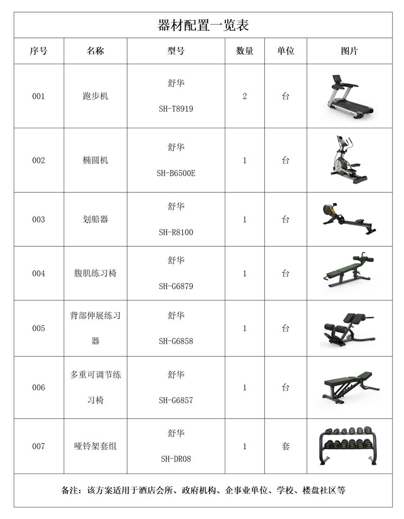 健身器材配置说明∶