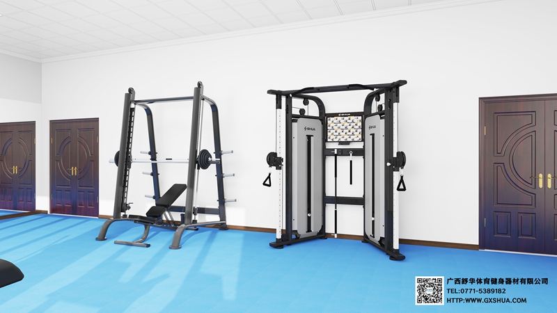 5.好博史密斯机SH-G6853*1台-锻炼股四头肌、股二头肌、肱三头肌;史密斯机采用固定轨迹的杠铃设计,大大降低了训练过程中的安全风险,通过深蹲、卧推、肩推等经典动作,可以针对性地锻炼腿部力量、上肢力量、背部肌群、胸部塑形以及肩部稳定等,从而全面提升身体素质,满足不同的健身需求;