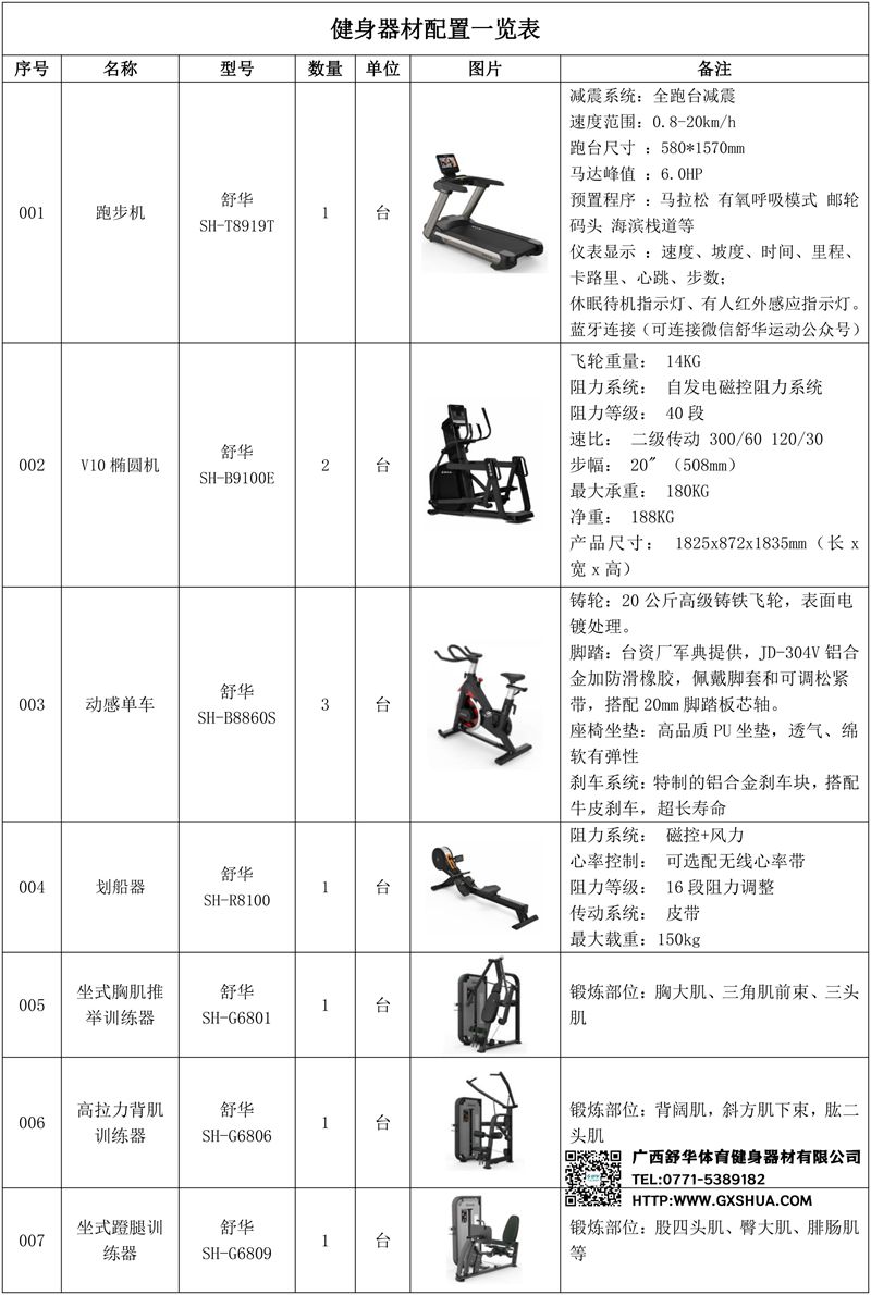 1.好博V9+智能跑步机SH-T8919T*4台-V9+采用全跑台减震设计,为跑者提供舒适的落脚地感和稳定的跑步支撑,良好的缓冲防护,降低膝关节受伤风险。商用大跑台,为跑者提供从容奔跑空间,180kg承载力,580*1570纯跑台面积,满足专业健身需求。V9+采用F级商用马达,6HP峰值马力,20km/h最高速度,提供源源不断的动力。V9+内置健身直播软件,每周提供直播课程,内含大量专业线上健身点播课程,可为健身房不同人群提供多样化健身课程服务。V9+搭载全新跑步姿态分析系统,提供五大步态数据,为跑者提供综合评估及训练建议,帮助跑者调整优化跑姿,让运动更科学高效。3D竞赛软件,画面如同VR游戏效果,提供训练及竞赛模式,线上竞赛模式,可联动不同单位及公司,不同健身房之间健身爱好者,打造职工健身文化,促进交流。