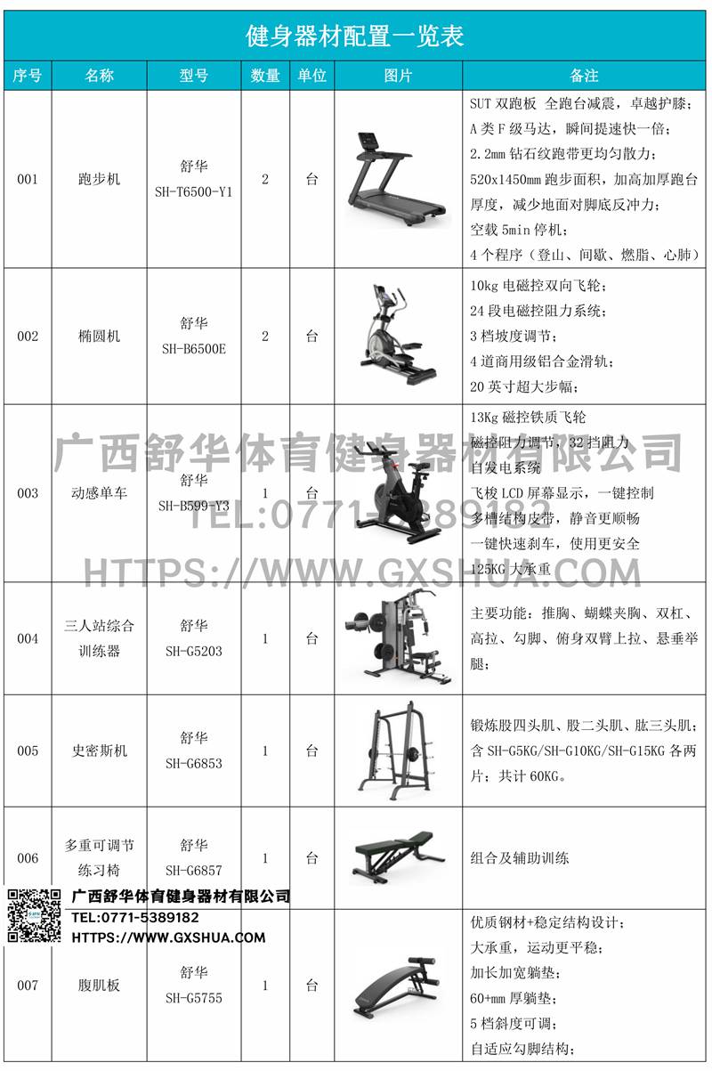 1.好博X5跑步机SH-T6500*2台-新X5拥有740mm的宽敞跑台,520mm宽跑带,跑步时更畅快无拘束。搭载SUT全跑台减震系统,针对跑步冲击区进行前、中、后以及双侧全方面避震,有效分散跑步时对跑者膝盖和踝关节的冲击,跑步也能更护膝。采用T18MM跑板+5MM减震棉+T12MM双层专利跑板减震结构设计的韧性跑板,承重力强,回弹舒适,带来缓震护足的舒适跑步体验。