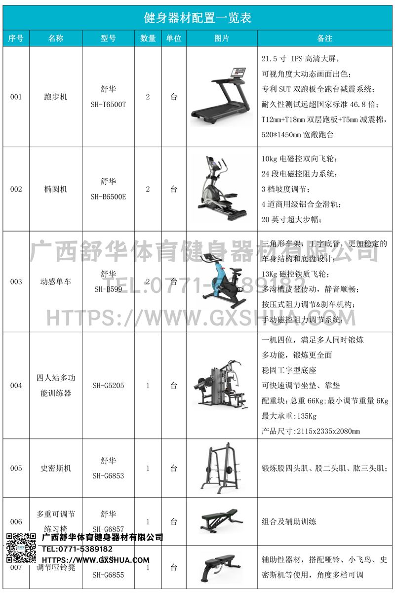 1.好博X5 Pro跑步机SH-T6500T*3台-采用高性能电机,提供稳定动力,支持长时间高强度运行,适合长时间有氧训练,跑台宽敞,提供舒适跑步空间,减少运动中的束缚感,适合不同体型用户。配备先进减震系统,有效缓解跑步对关节的冲击,降低运动损伤风险,内置智能控制系统,支持多种预设程序和个性化训练计划,用户可根据需求调整速度和坡度,满足多样化训练。