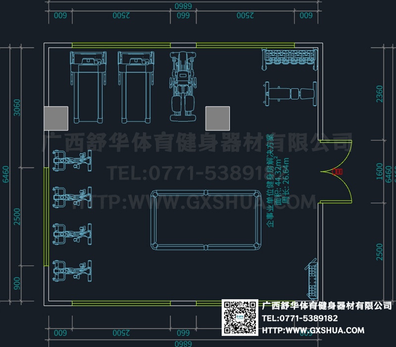 44m²企事业单位健身房由于场地有限,根据客户需求及预算,有氧器材区域配置好博跑步机、椭圆机、动感单车、多元化的有氧器材能够有效提升心肺功能;自由力量区域配置哑铃套组满足多样化训练需求,促使健身训练更丰富。单位健身房配置台球桌,为员工的业余生活增添了乐趣和选择。与传统的健身器材锻炼相比,台球具有更强的娱乐性和趣味性,能够吸引更多员工参与到健身活动中来,提高健身房的使用率,让员工在工作之余有更多放松身心的方式。
